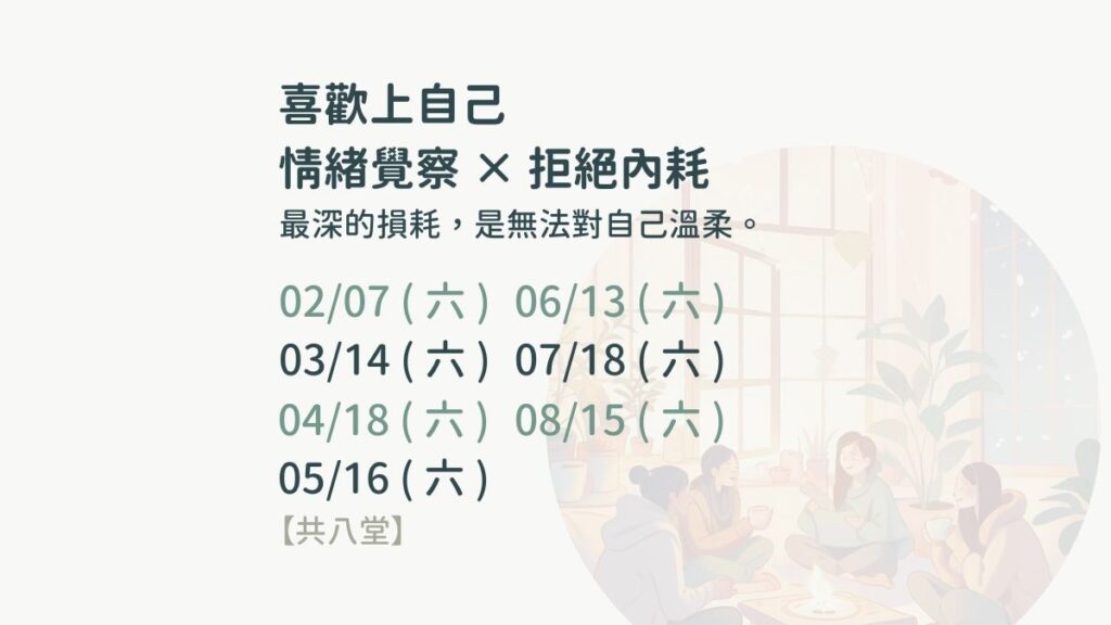 喜歡上自己 – 情緒覺察 × 拒絕內耗 | 0207 – 0815 | 台北班 | 八堂課